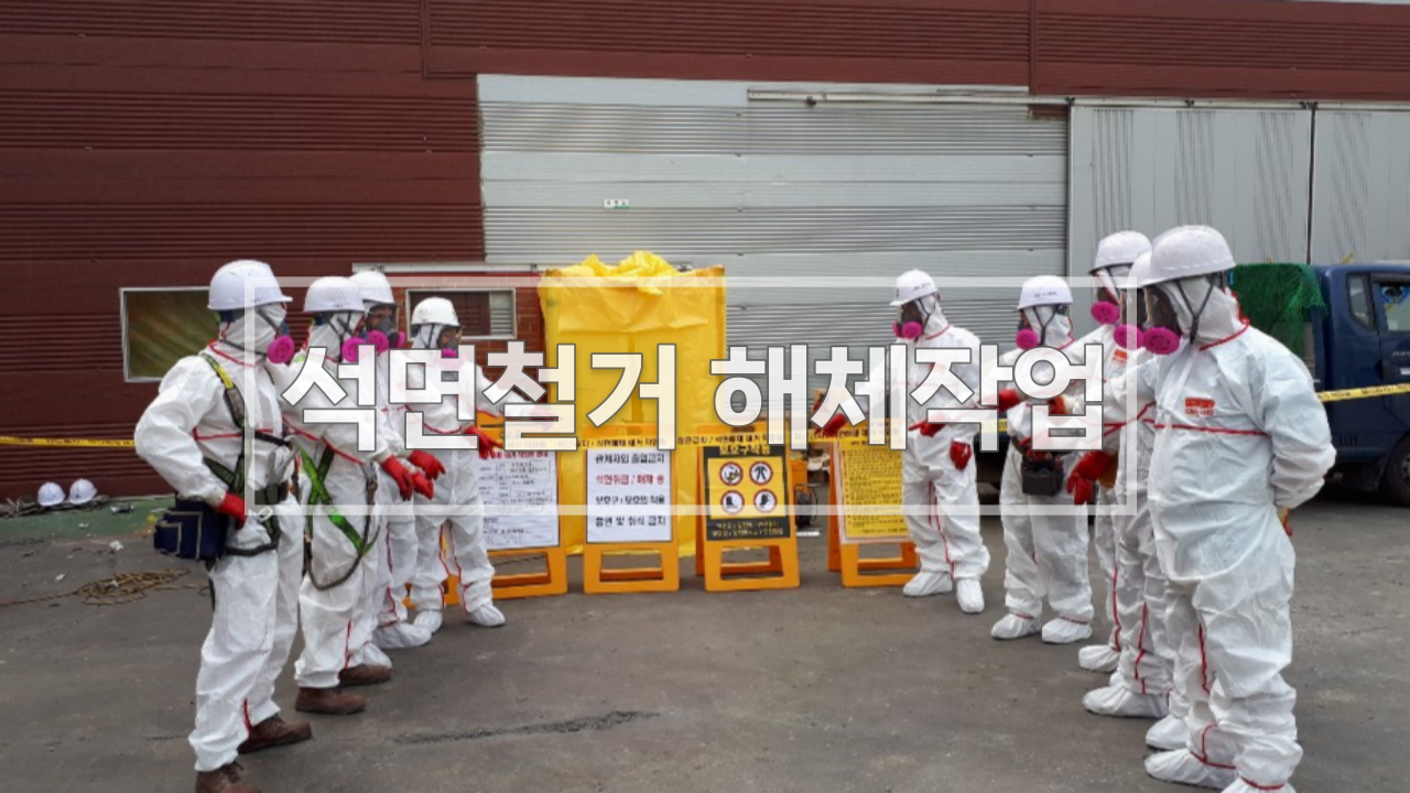 석면철거공사는 산업안전 보건법에 의해 석면해체제거업 면허를 보유한 회사에서 진행할 수 있습니다.