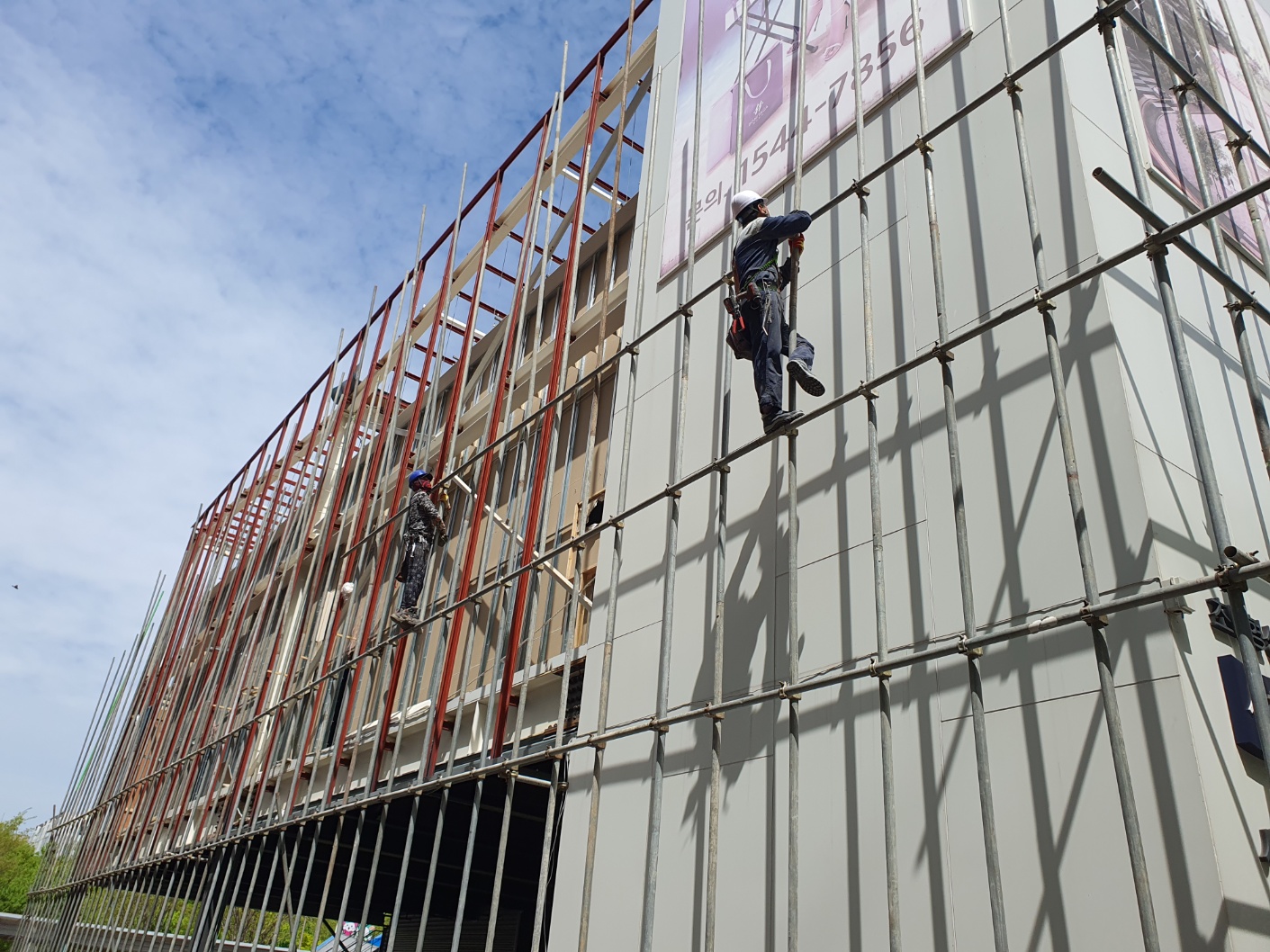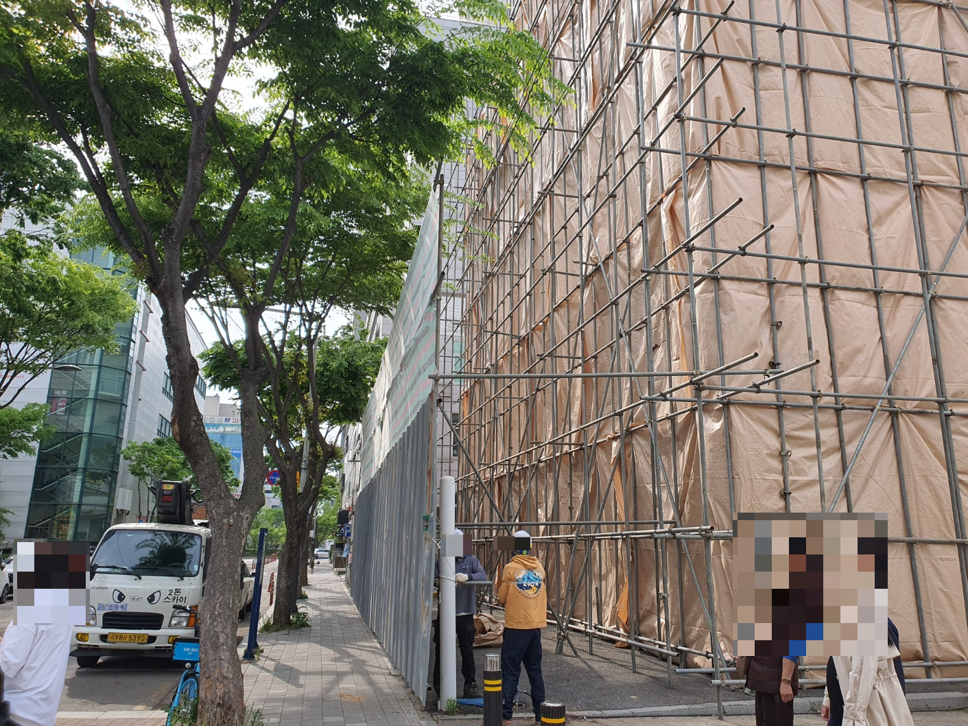 내부철거와 내부폐기물반출이 끝날쯤 비계구조물 설치를 진행합니다.